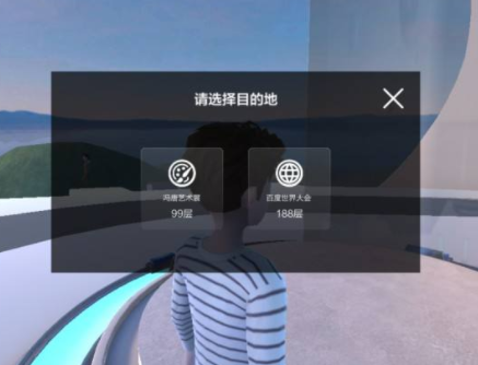 3、目前,在该虚拟世界中,用户可以通往三个小场景,分别是“冯唐艺术层”、“百度世界大会”,以及鲜奶体验馆。透过官方的介绍可以了解到,用户能够通过虚拟身份与客户、合作伙伴进行即时语音和互动交流,但根据体验,目前并未在App中看到其他玩家,说明产品或还未进行推广宣传。